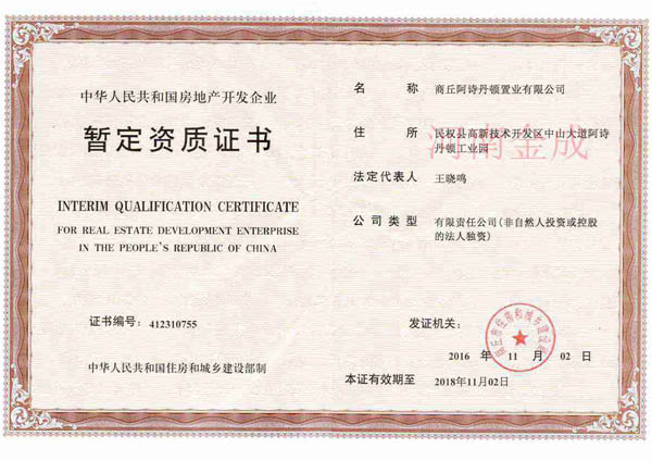 • 房地產暫定資質證書