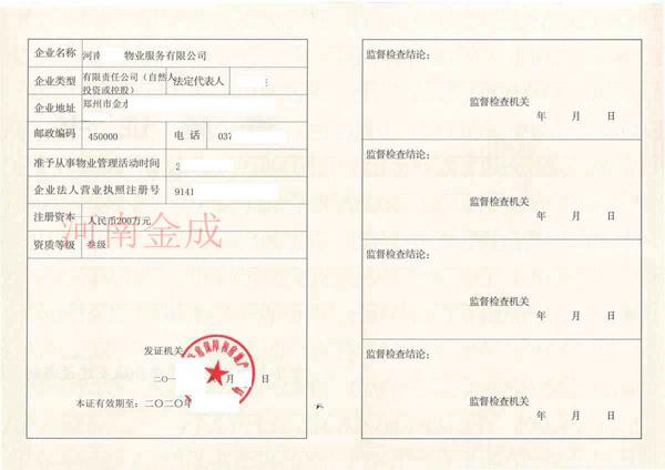 • 物業三級資質證書
